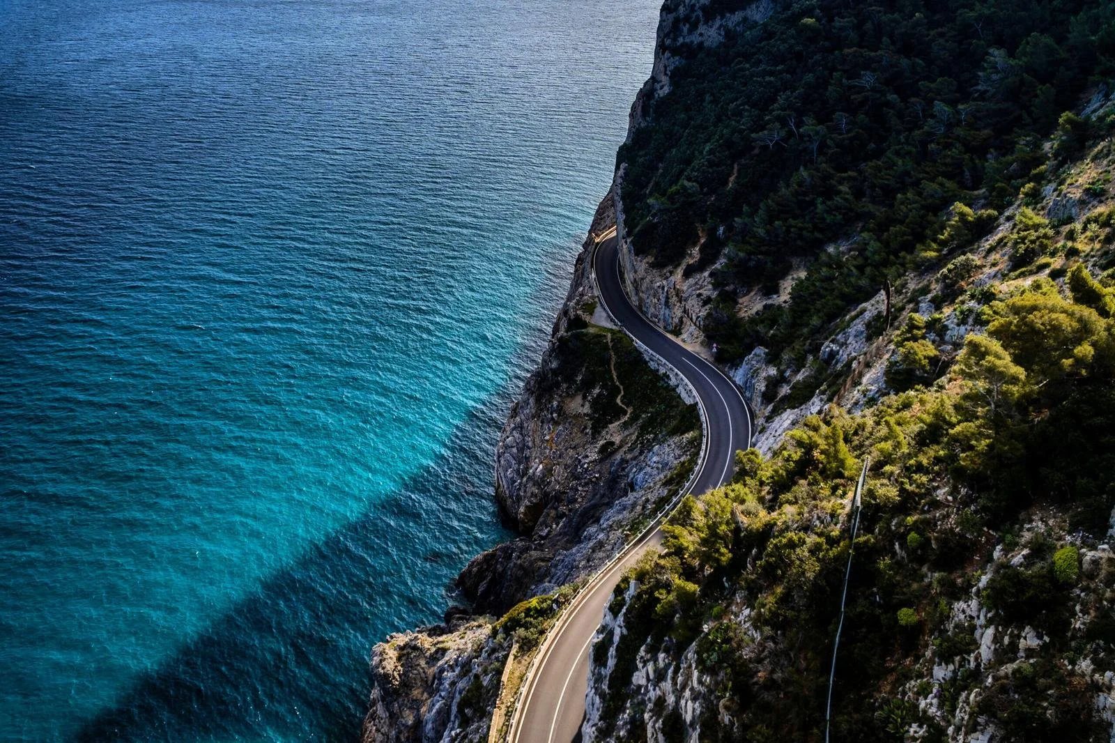 As we descend into Italy, the journey continues along winding motorways through lush hillsides, eventually revealing glimpses of the Mediterranean coast.